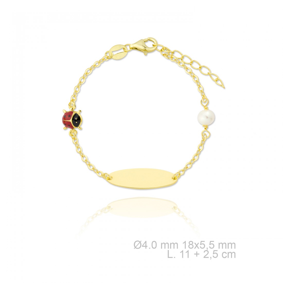 Golden plated Sterling Silver slave bracelet with a red and black enamel ladybird.