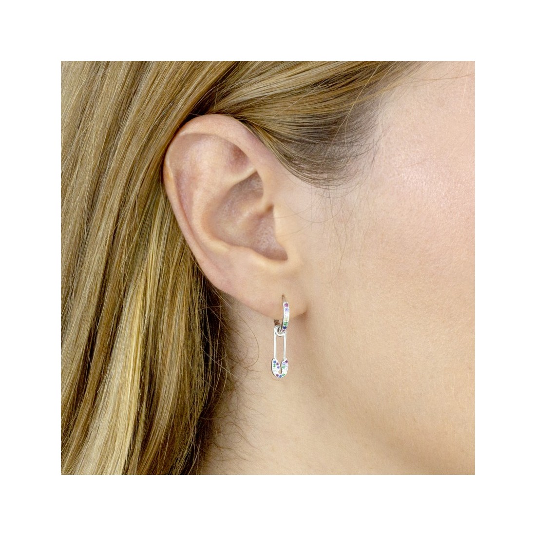 Sterling Silver bracelet with 17 mm safety pin bead and color zircons.Length 16,5 cm plus 2,5 cm extension chain.Includes packaging.