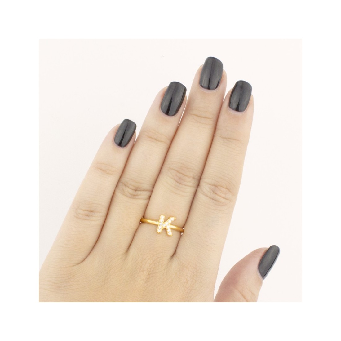 Golden plated Sterling Silver necklace with white zircons.Letter K. Size: 7 mm.Length 41 cm plus 4cm extension chain.Includes packaging.