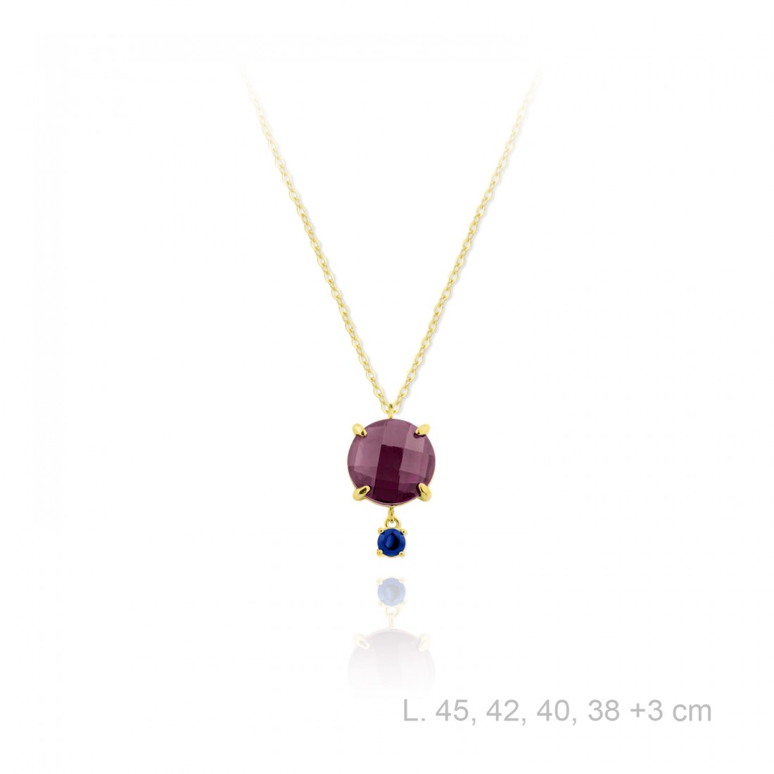 Golden plated Sterling Silver necklace with amethyst and shappire coloured zircon.