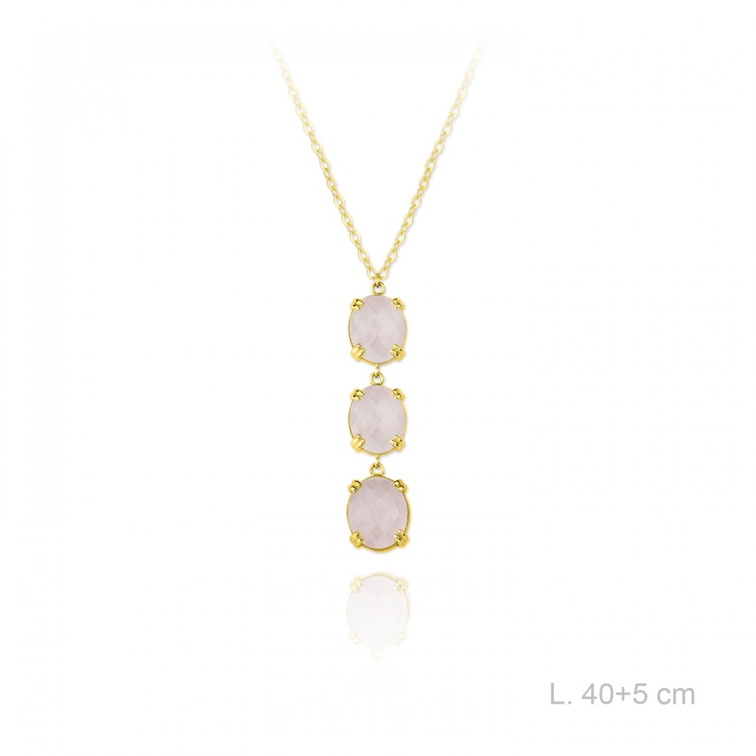 Golden plated Sterling Silver necklace with pink quartz.