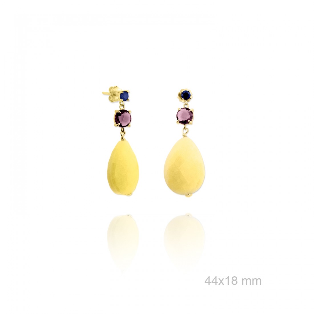 Golden plated Sterling Silver earrings with amethyst, citrinium and shappire coloured zircon.