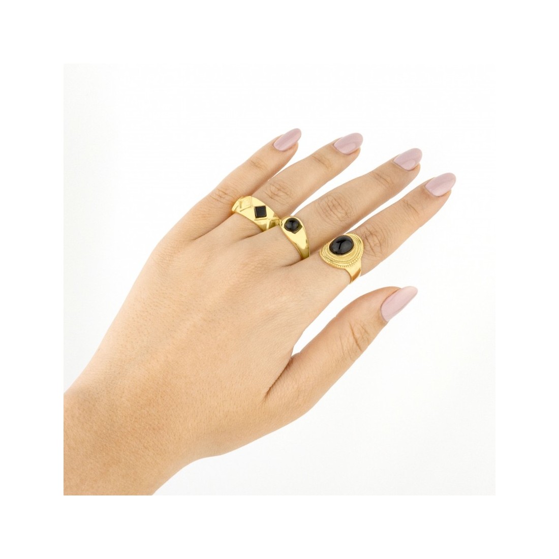 Ethnic style Golden plated Sterling Silver ring with onyx.
