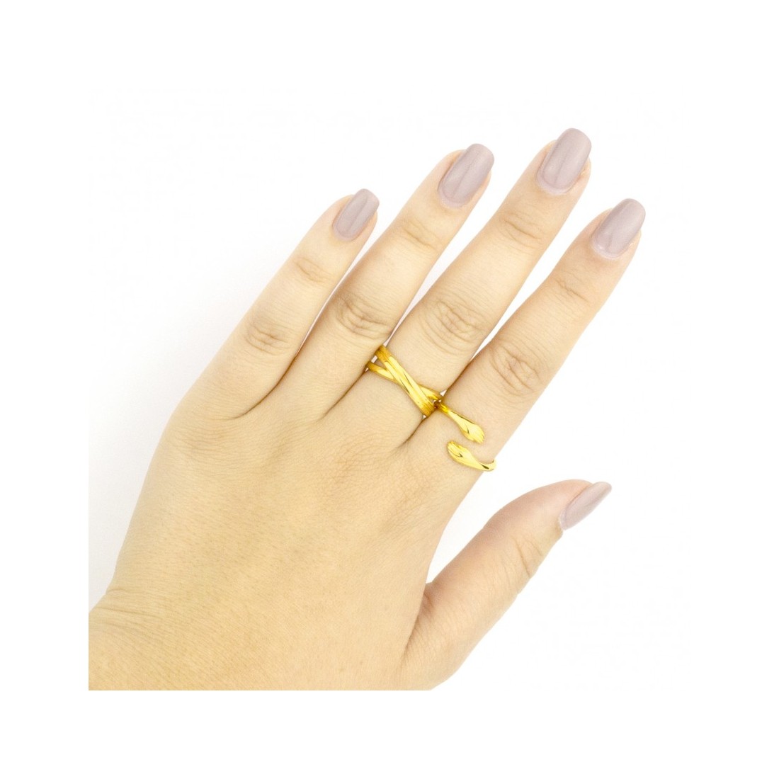 Golden plated Sterling Silver ring with crossed beads.