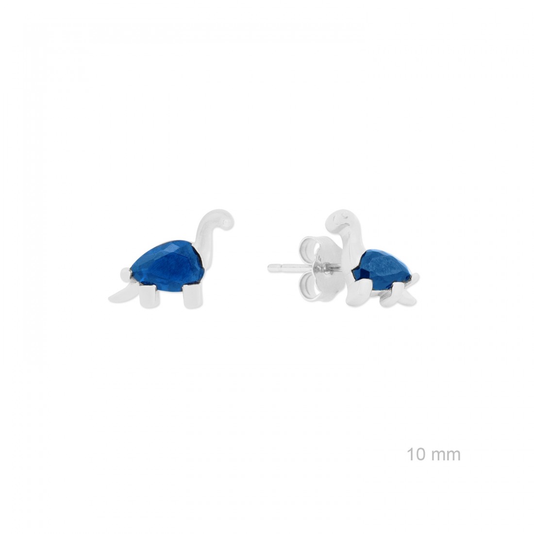 Pendientes de Plata de Ley con forma de dinosaurio de 10 mm de alto y circonita color zafiro.
