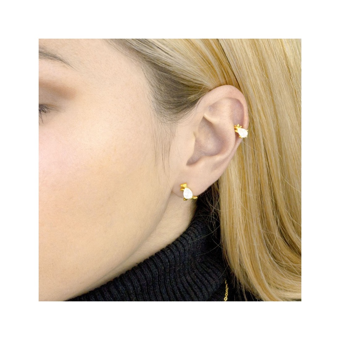 Pendientes de Plata de Ley chapados en oro con forma de dinosaurio de 8 mm de alto y circonita blanca.