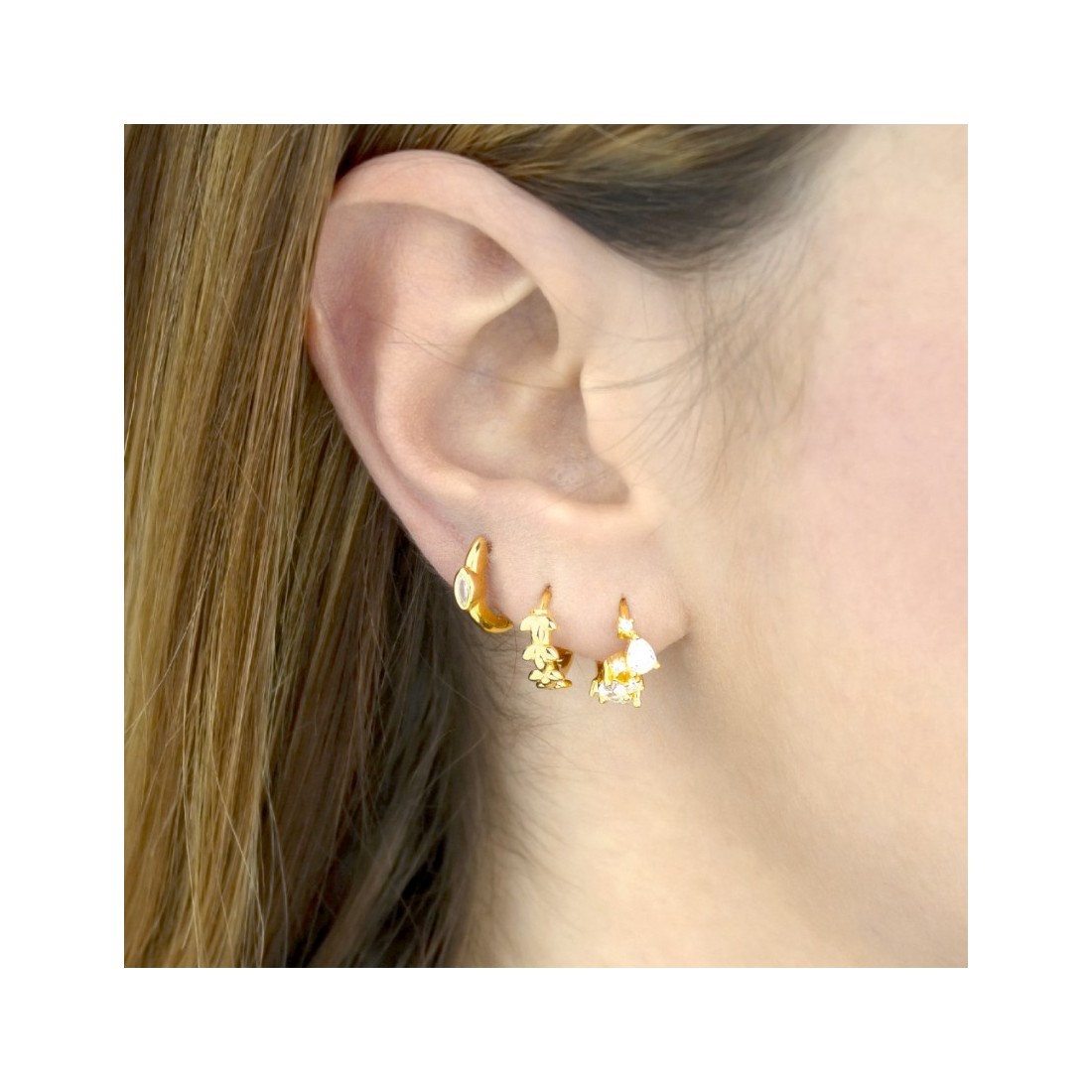 Aros de Plata de Ley chapados en oro de 12 mm de diámetro con motivos en forma de pequeñas hojitas.