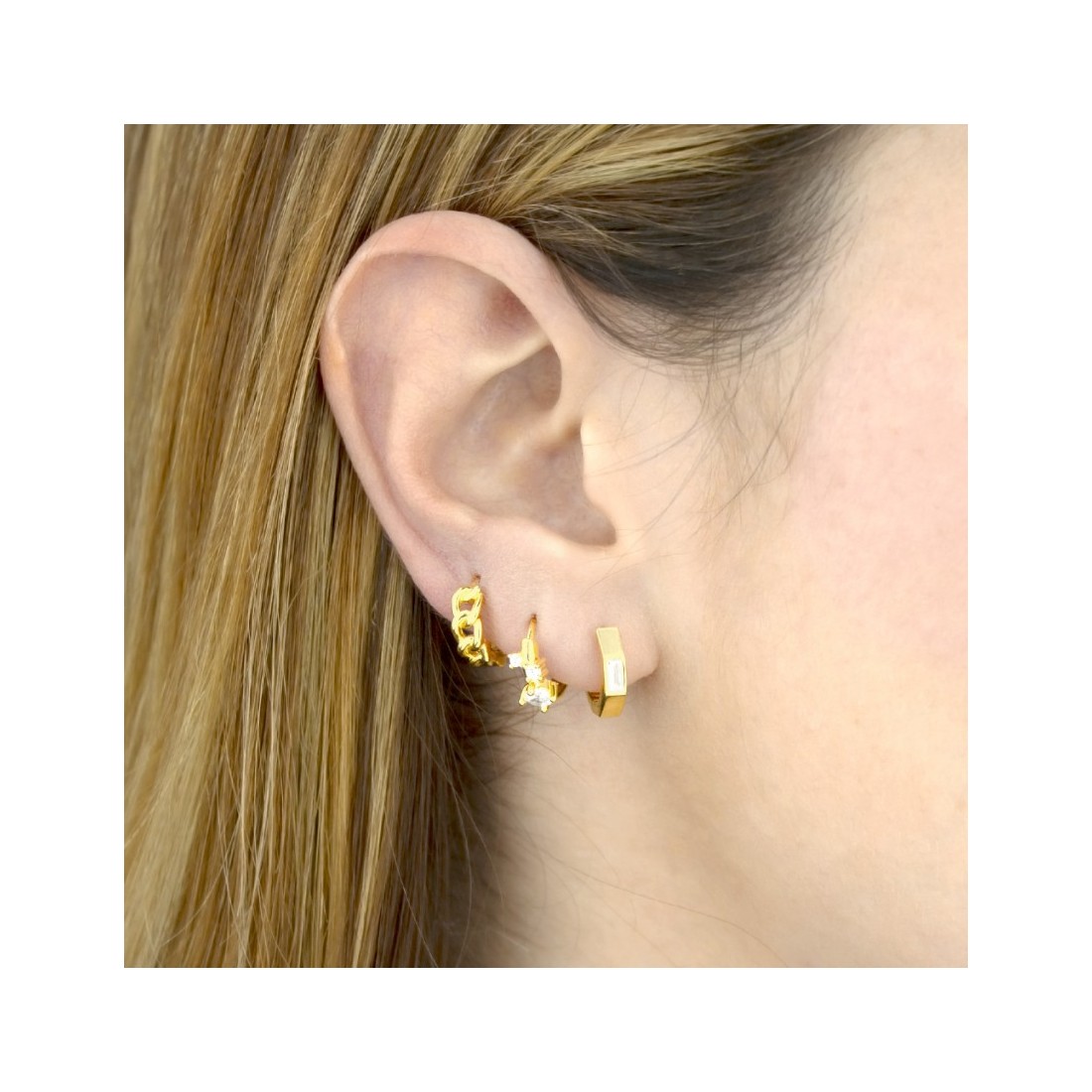 Aros de Plata de Ley chapados en oro de 12 mm de diámetro con una circonita blanca en talla baguette.