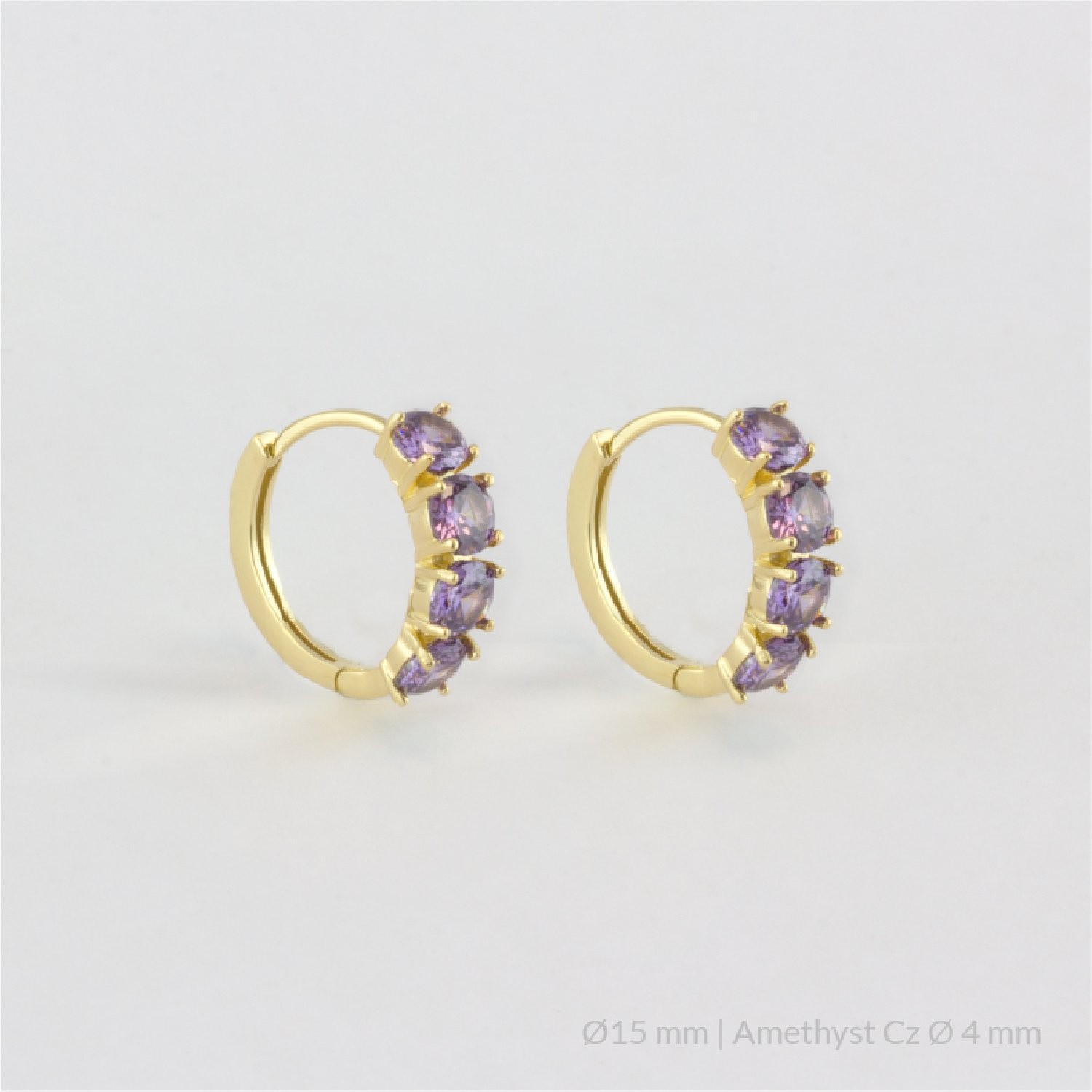 Aros de Plata de Ley chapados en oro con circonitas de color amatista.