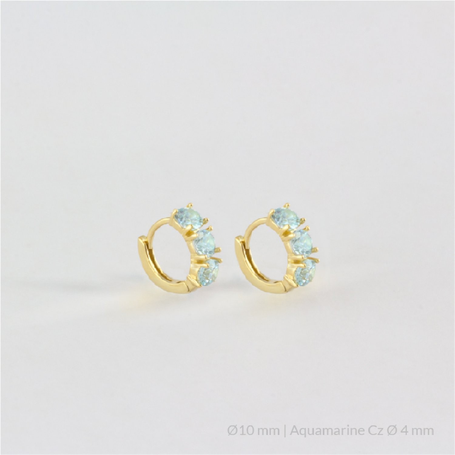 Aros de Plata de Ley chapados en oro con circonitas de color aguamarina.