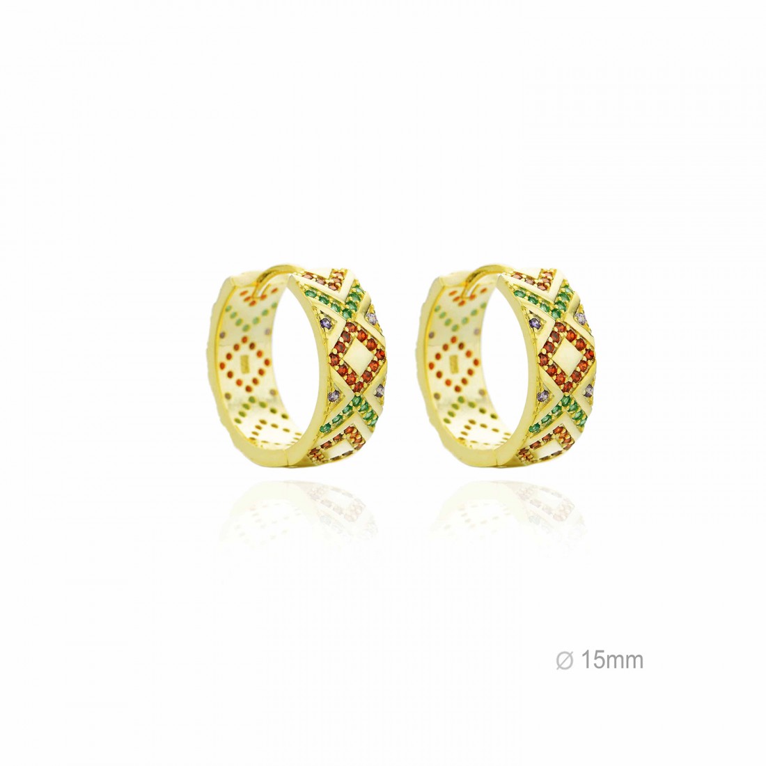 Pendientes Aro Dorado Ancho Circ. Multicolor