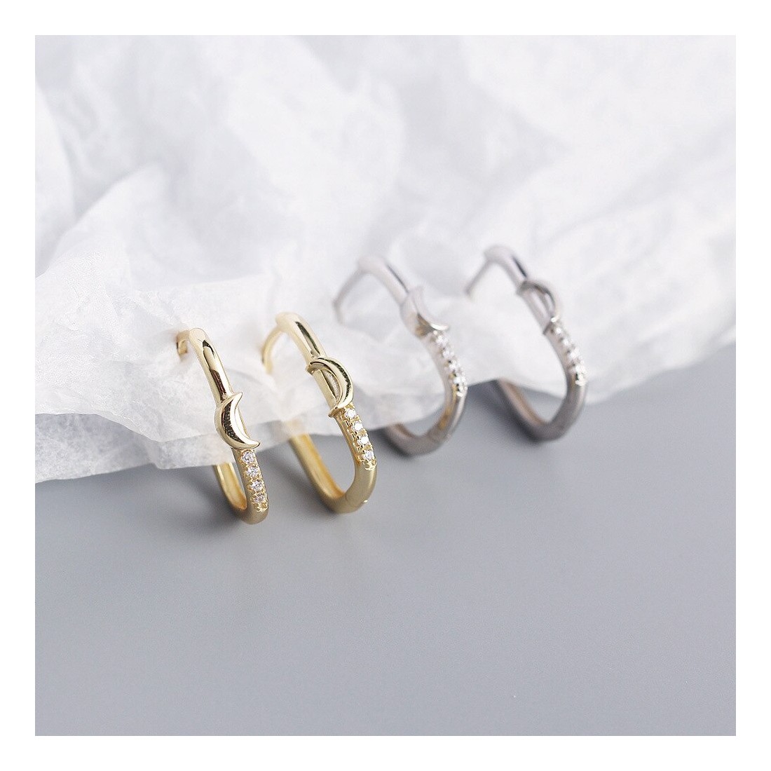 Pendientes Aro Rectángulo Dorado Circ Luna