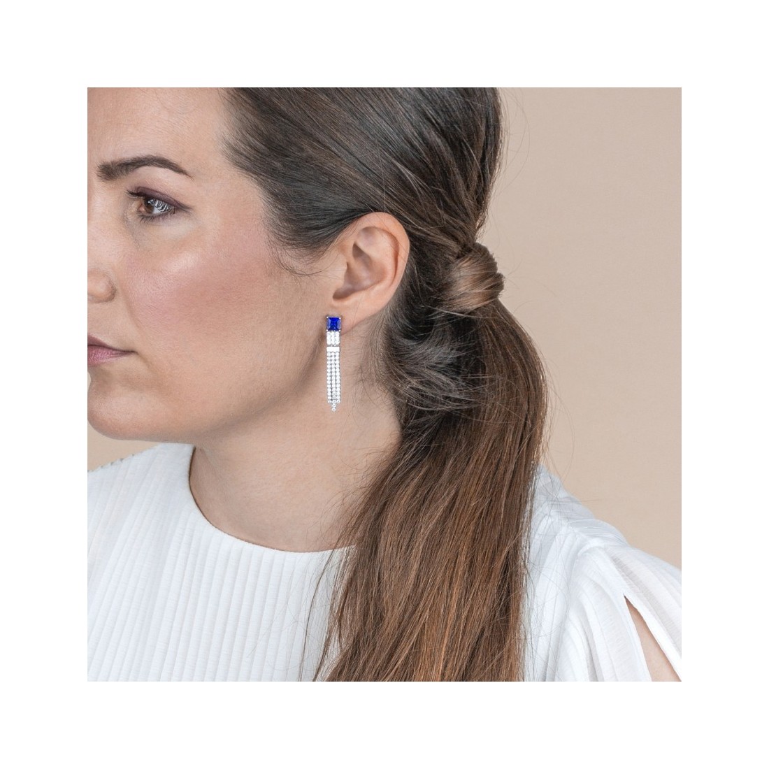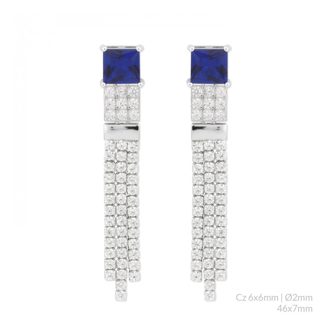 Pendientes de Plata de Ley con circonitas blancas de Ø2 mm y zafiro de 6x6 mm.