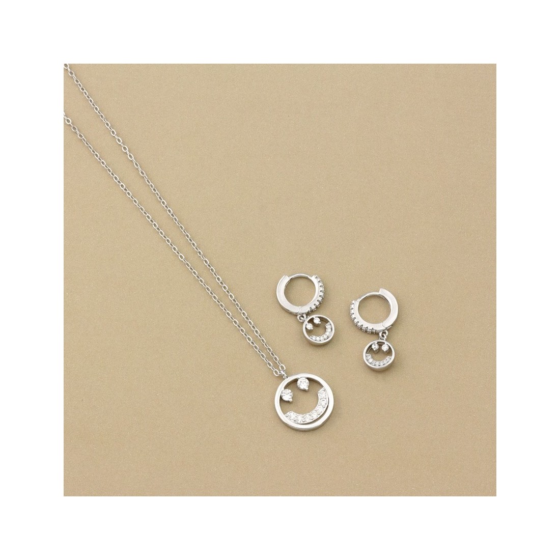 Aros de Plata de Ley de 11,5 mm de diámetro con motivo smiley o carita sonriente y circonitas blancas.Incluye caja.