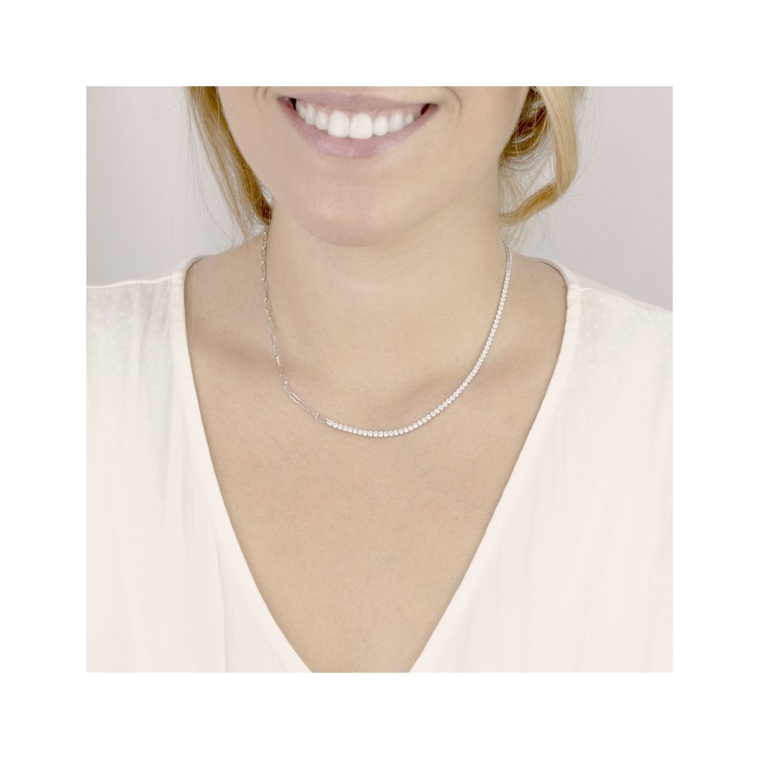 Gargantilla de Plata de Ley con eslabones largos y circonitas blancas.