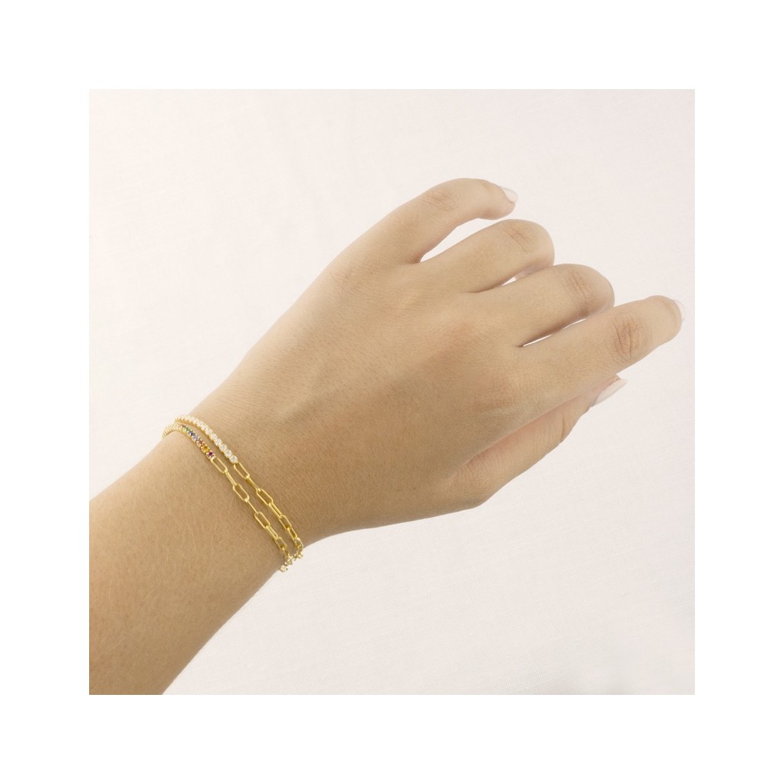 Pulsera de Plata de Ley chapada en oro con eslabones largos y circonitas blancas.