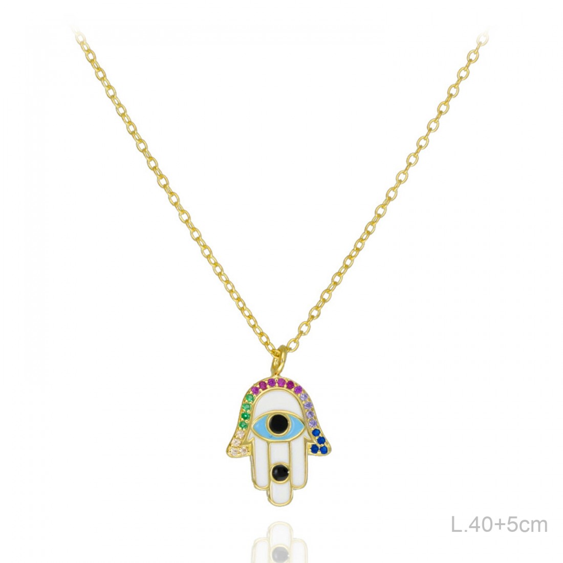 Gargantilla Mano Dorada Esmalte Circ Colores