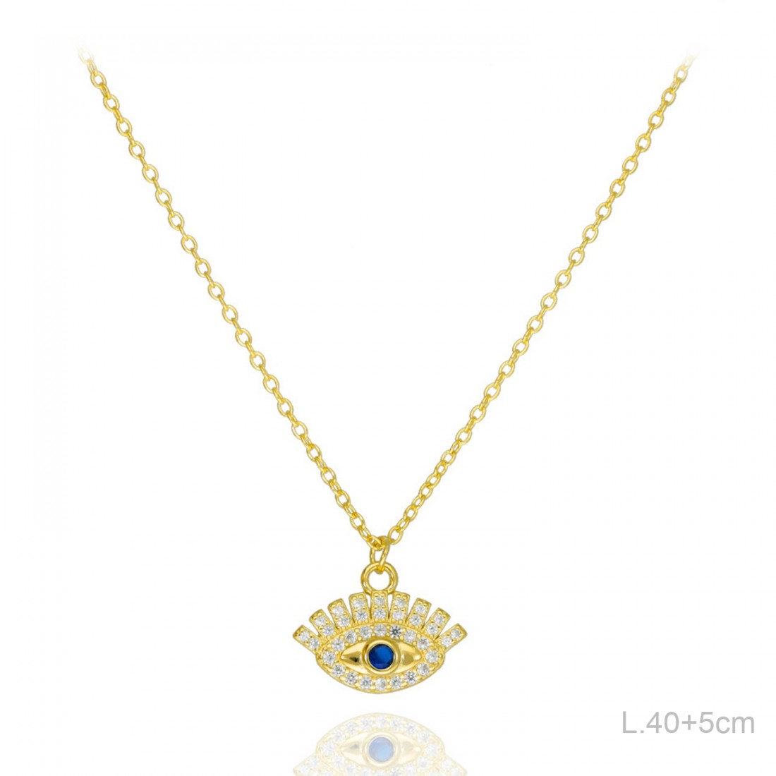Gargantilla Dorada Ojo Circ Azul Silueta