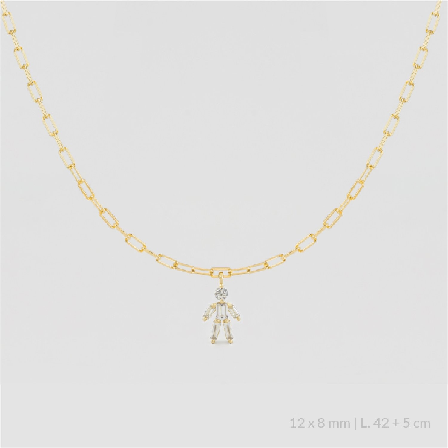 Gargantilla de Plata de Ley chapada en oro con un niño de circonitas. Delicados diseños de niños donde cada pieza brilla como una pequeña estrella, convirtiéndose en un símbolo de amor eterno, pensada quienes desean llevar siempre cerca lo más valioso de su vida.
