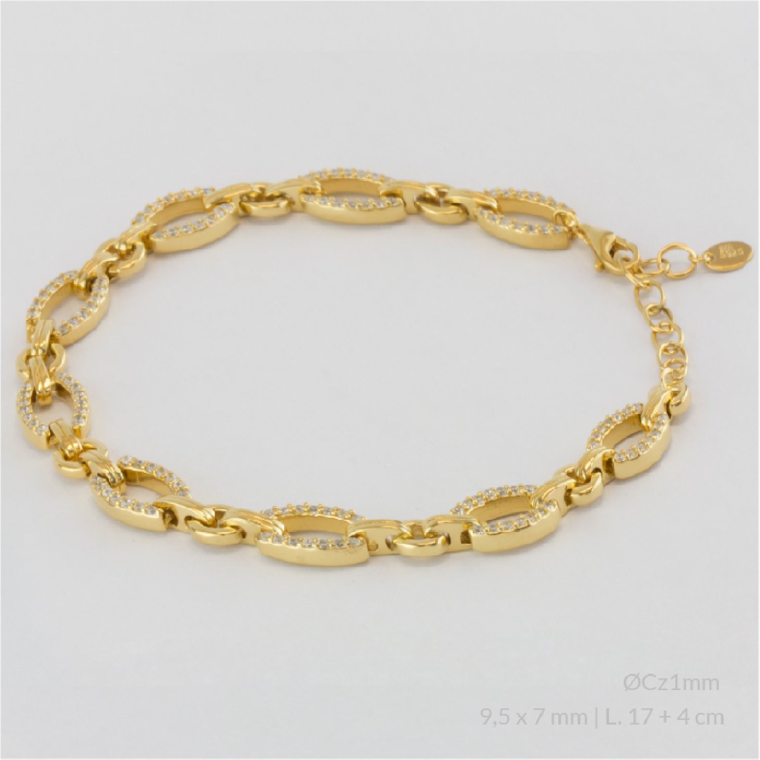 Pulsera de Plata de Ley chapada en oro con circonitas blancas.