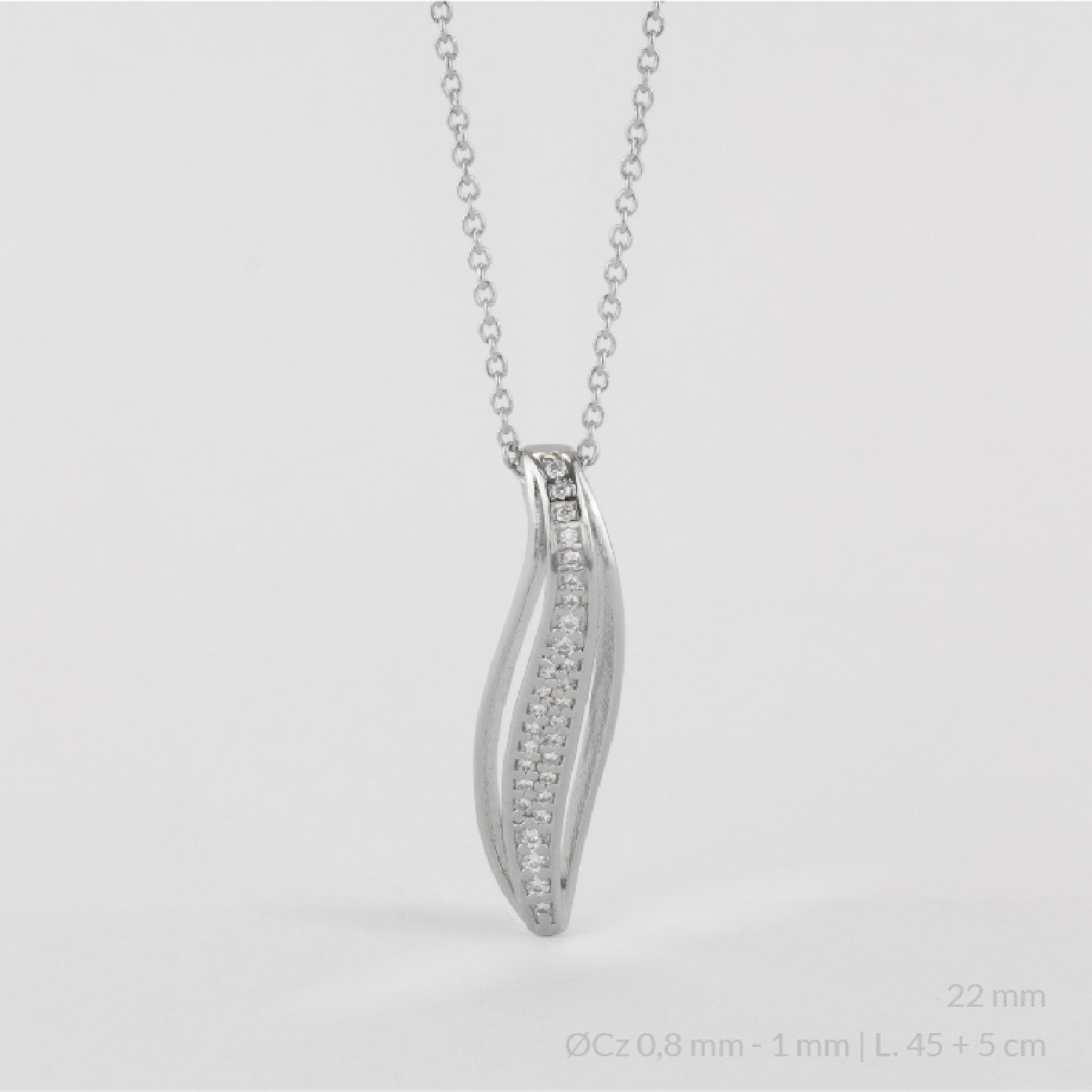 Destaca por su delicado diseño en forma de hoja con elegantes contrastes entre circonita y superficies lisas.