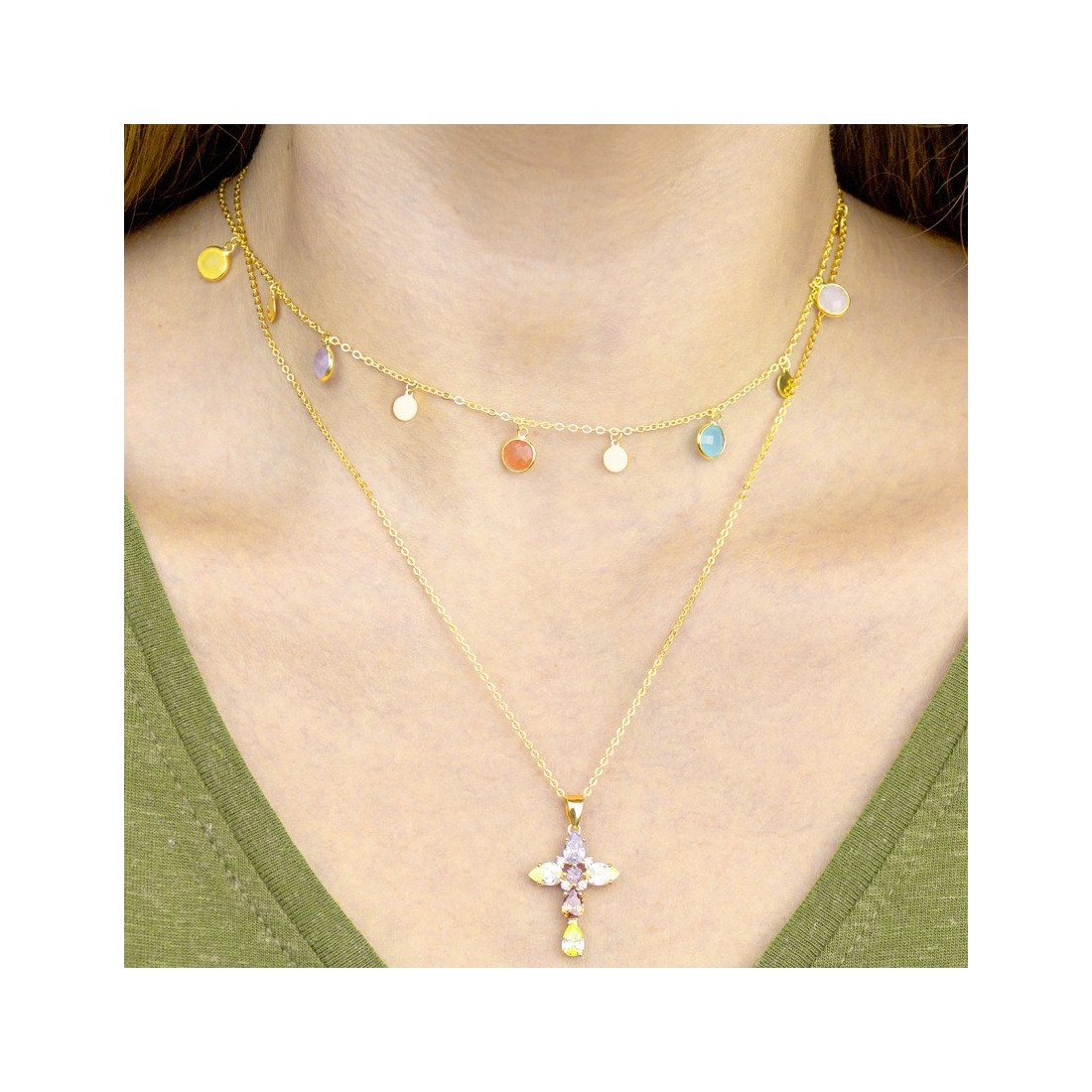 Colgante Cruz c/cadena c.color