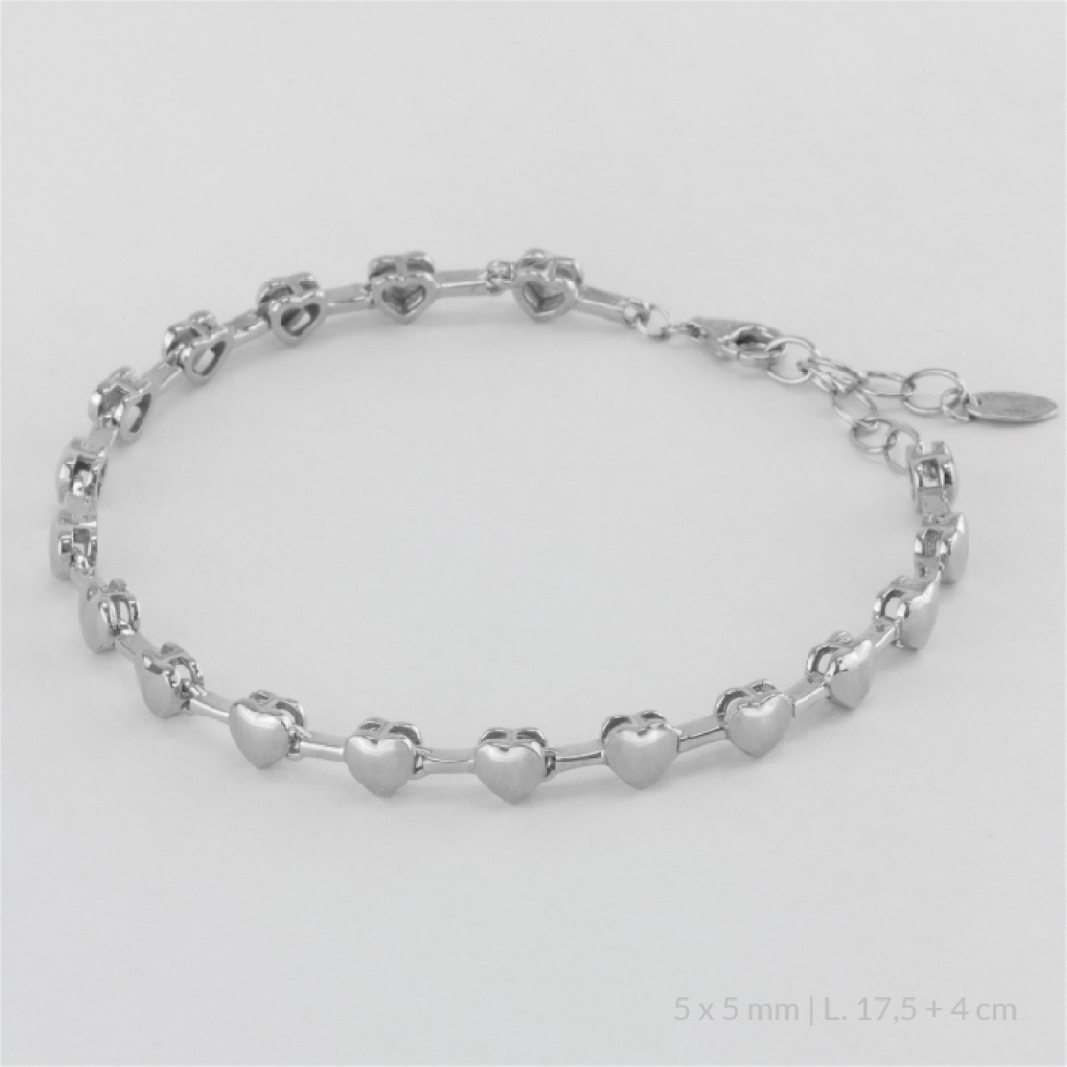 Sus eslabones son en forma de corazón. Cada corazón está unido mediante pequeños conectores alargandos que le dan un aspecto delicado y romántico.
