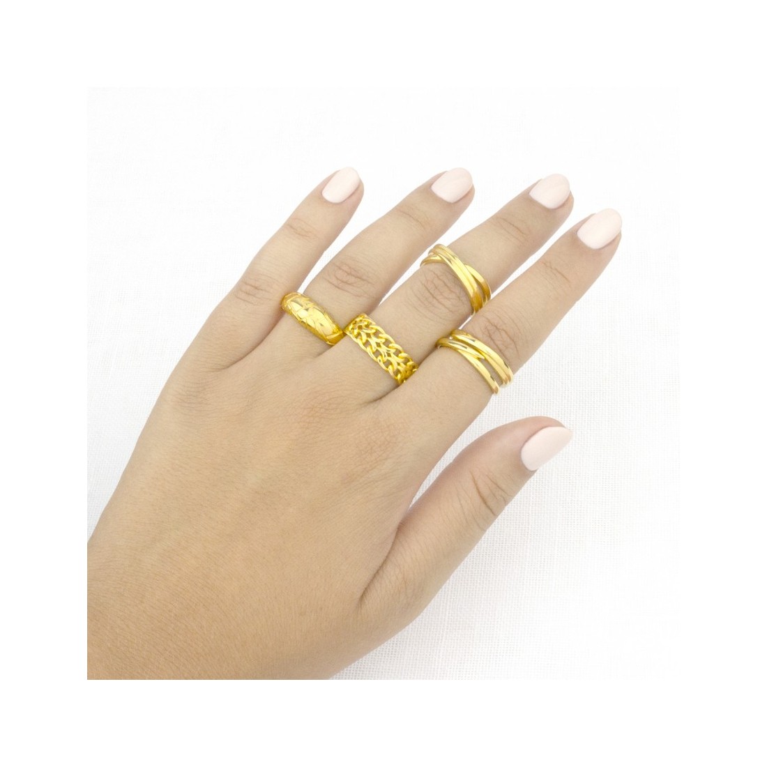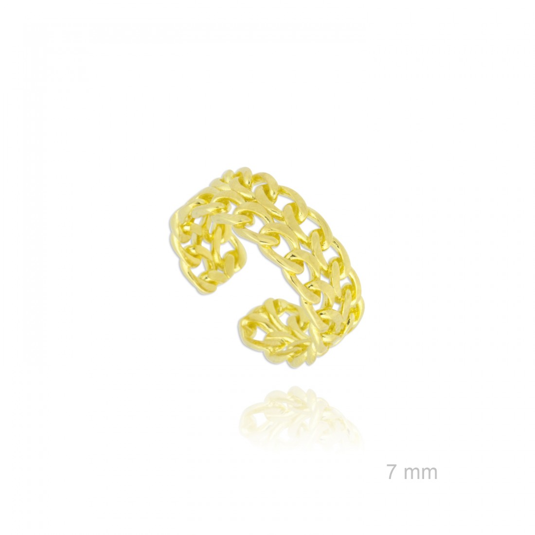 Sortija de Plata de Ley chapada en oro con forma de malla de eslabones.