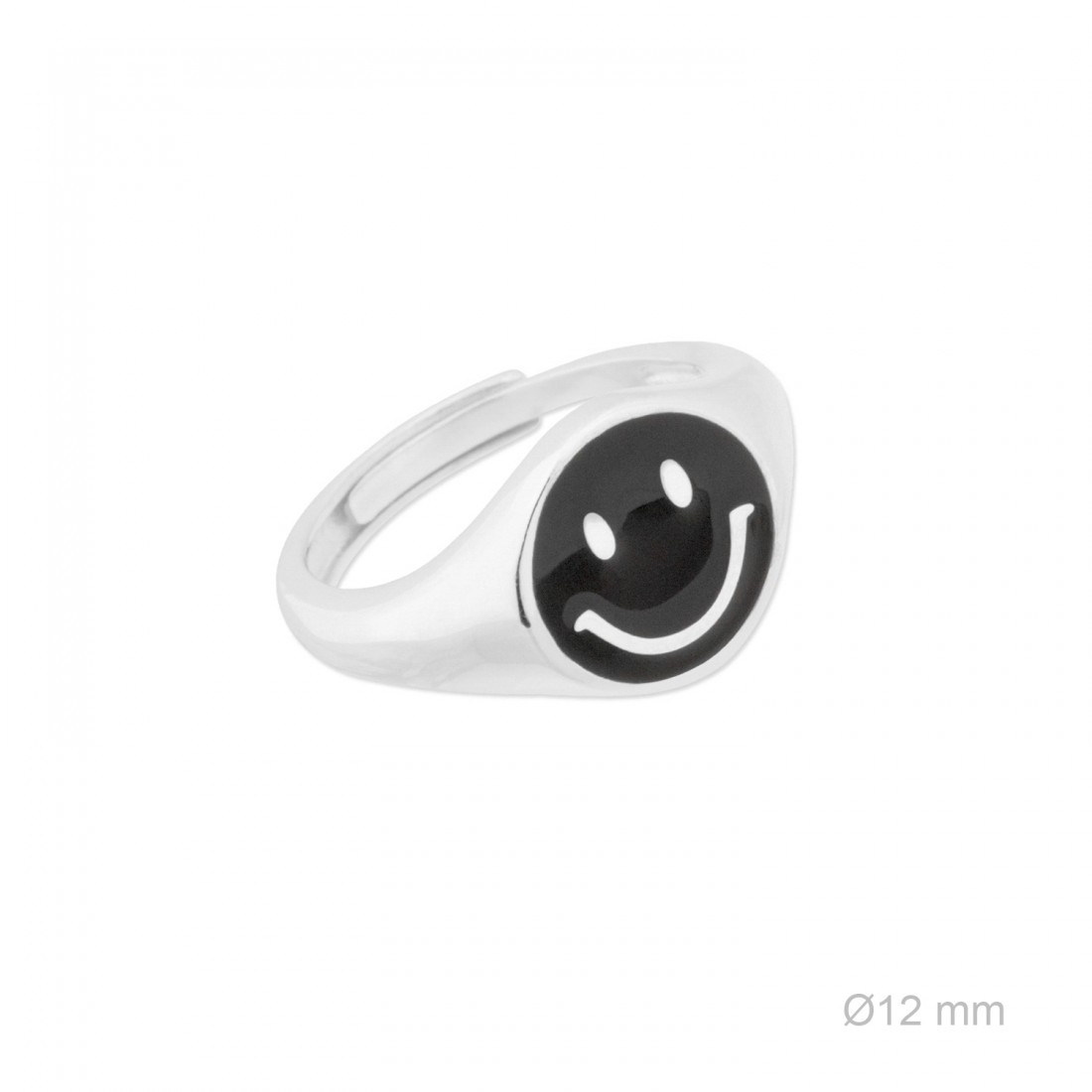 Pulsera de Plata de Ley con motivo smiley o carita sonriente de 12 mm de diámetro y esmalte negro.Longitud de 16,5 cm más cadena de alargamiento de 2,5 cm.Incluye caja.