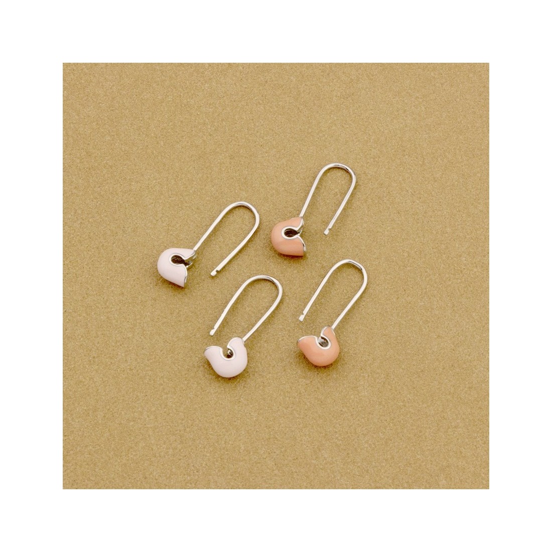 Pendientes de Plata de Ley con forma de imperdible de 23 mm de alto con esmalte coral.