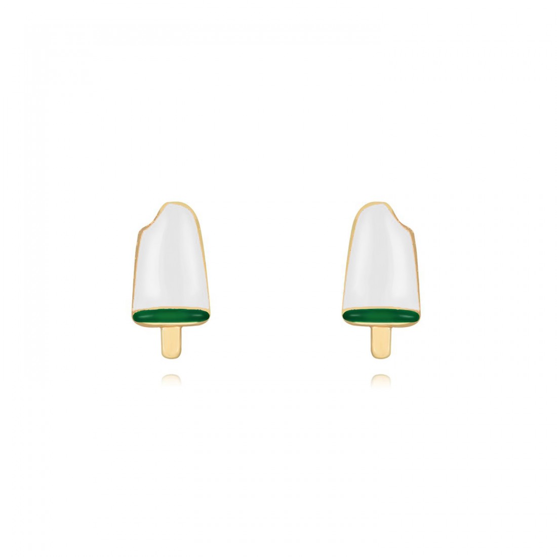 Pendientes Presión Dorado Helado Esmalte Blanco