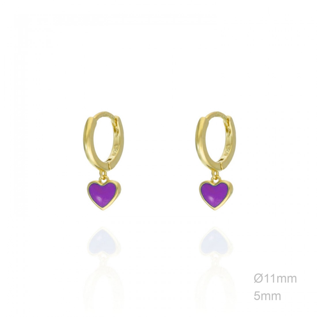 Pendientes Aro Dorado Corazón Esmalte Morado