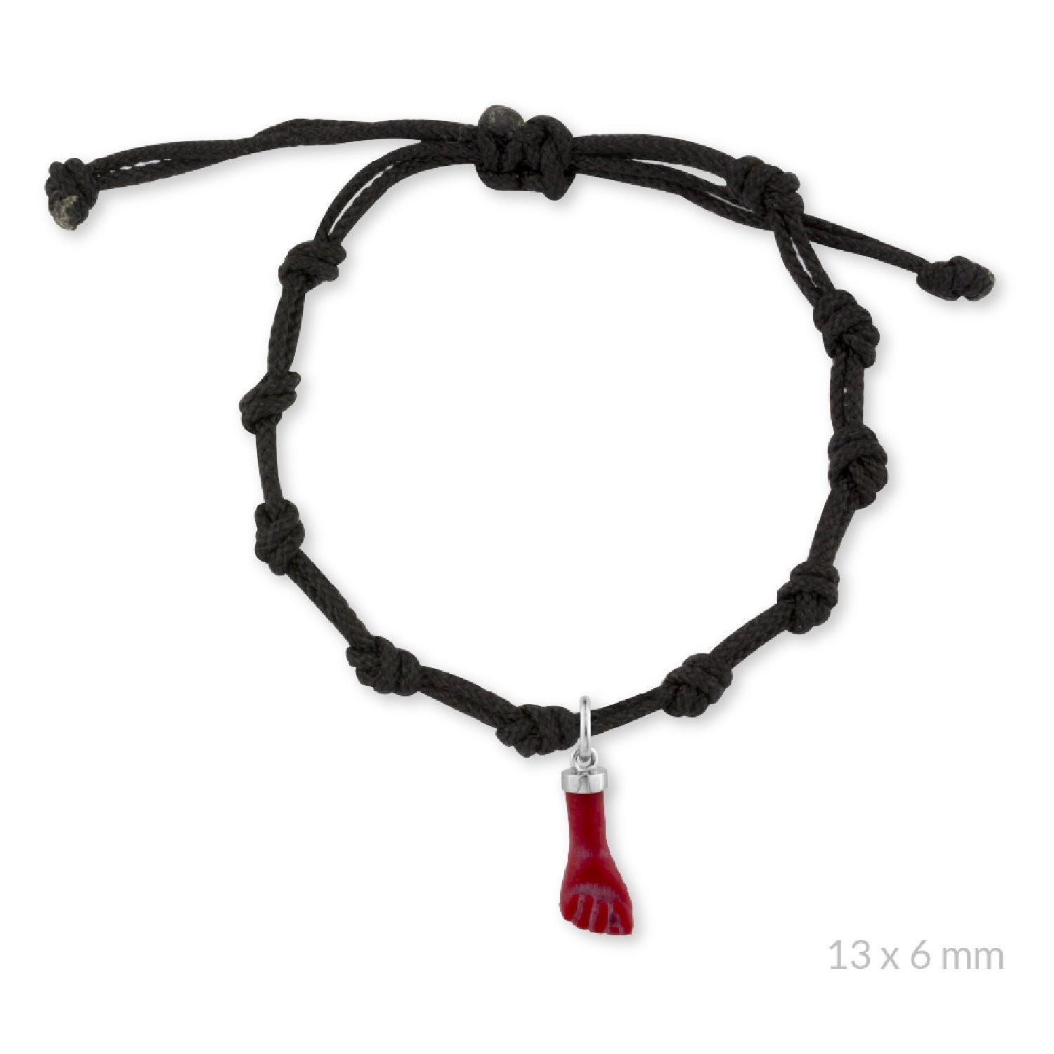 Pulsera de hilo negro con Higa de coral de Plata de Ley/b> | 10 nudos.
