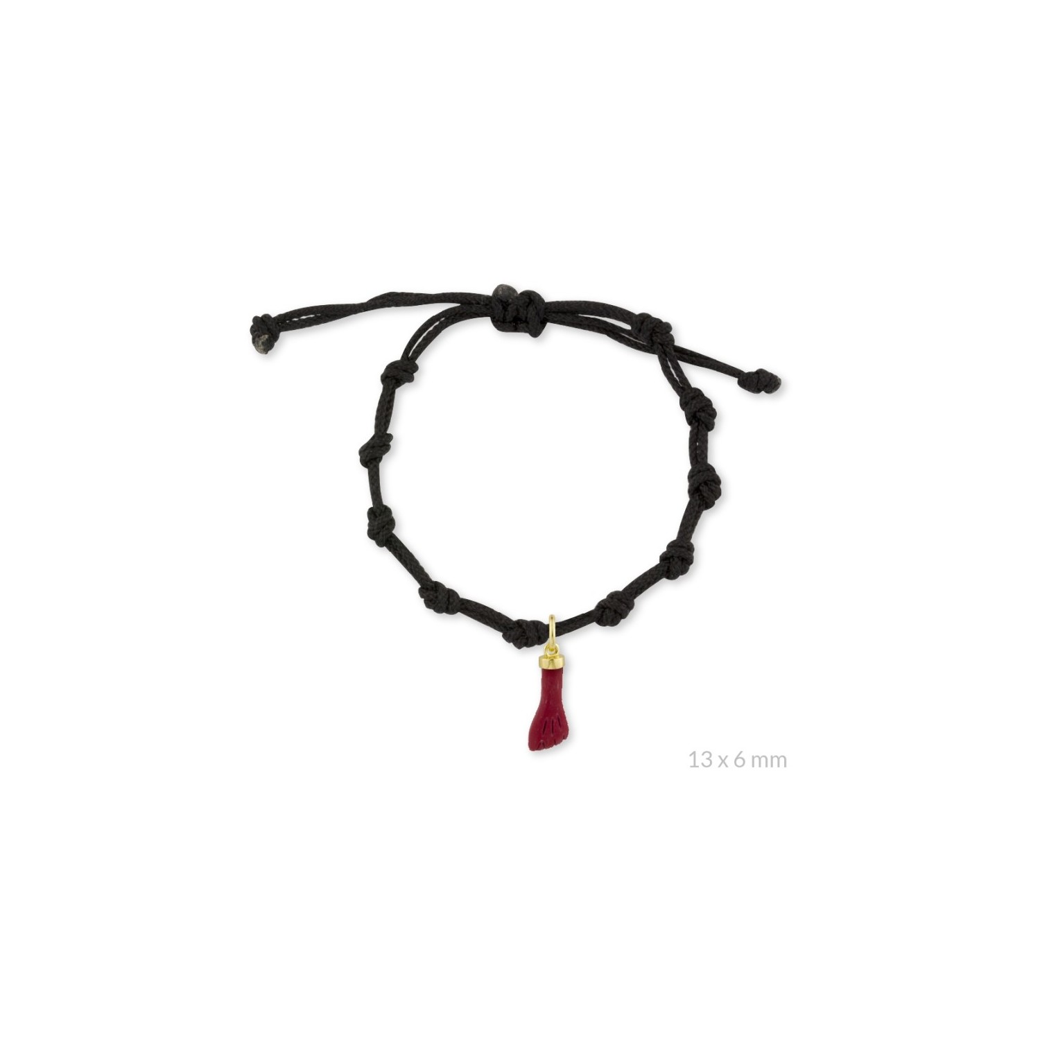 Pulsera de hilo negro con Higa de coral de Plata de Ley chapada en oro< | 10 nudos.