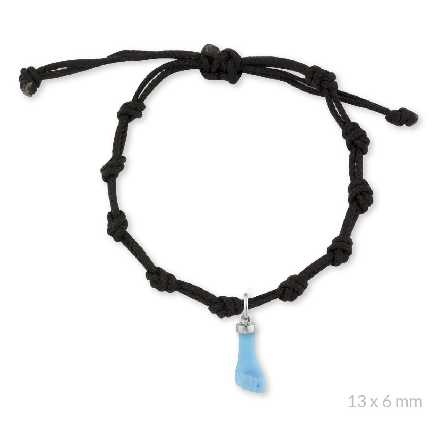 Pulsera de hilo negro con Higa de turquesa de Plata de Ley | 10 nudos.
