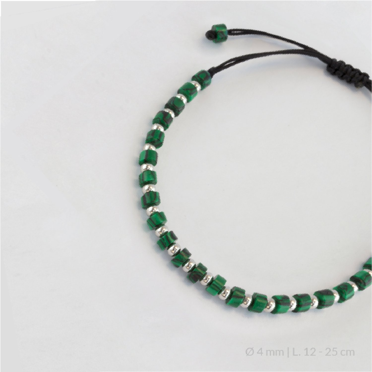 Tipo de piedra: malaquita.| Tamaño: Ø4 mm aprox. | Acabado: brillo.