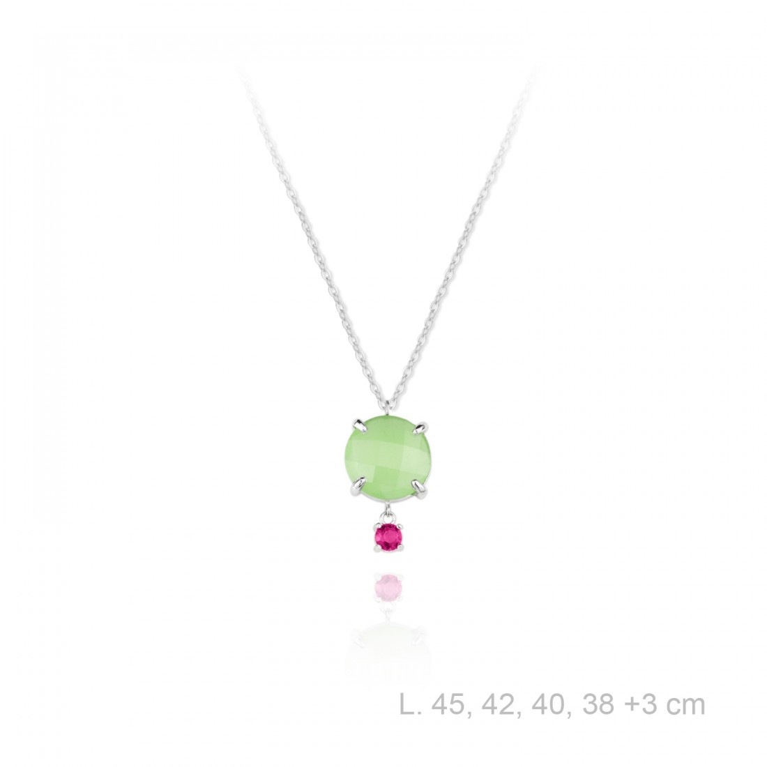 Gargantilla de Plata de Ley con calzedonia verde y circonita color rubí.
