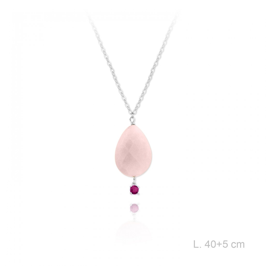 Gargantilla de Plata de Ley con cuarzo rosa y circonita color rubí.