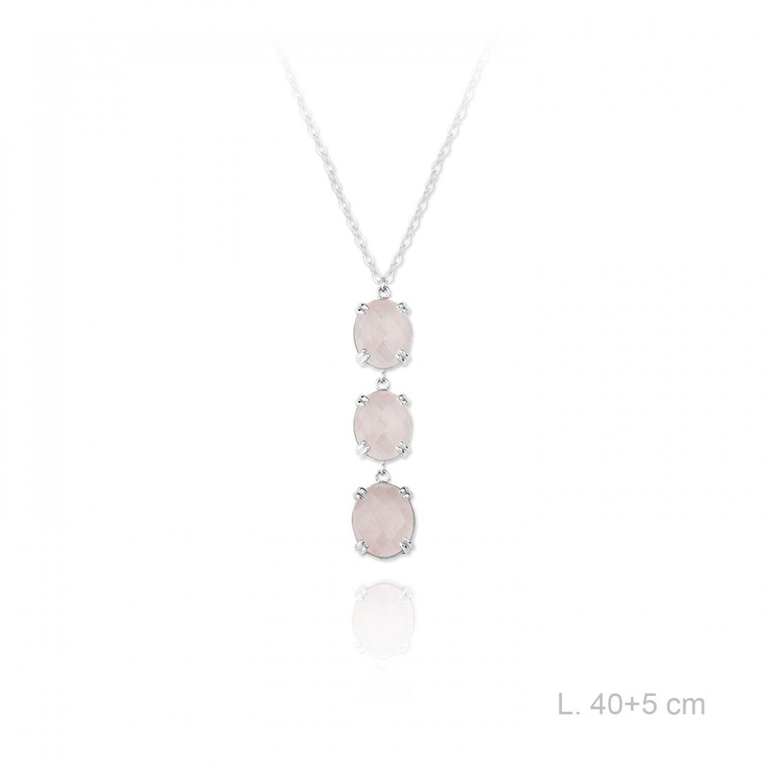 Gargantilla de Plata de Ley con cuarzo rosa.
