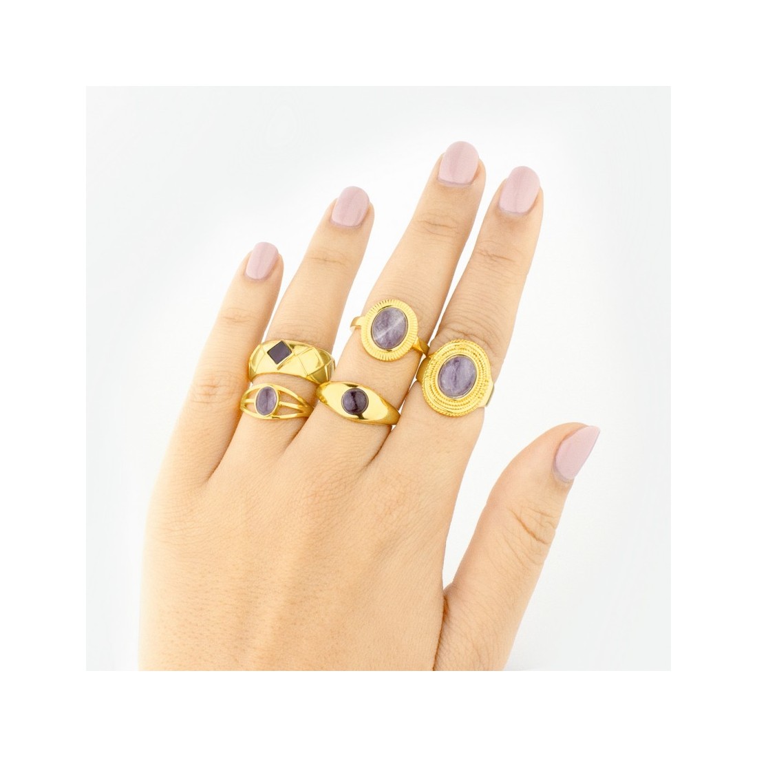 Sortija ajustable a diferentes medidas.
