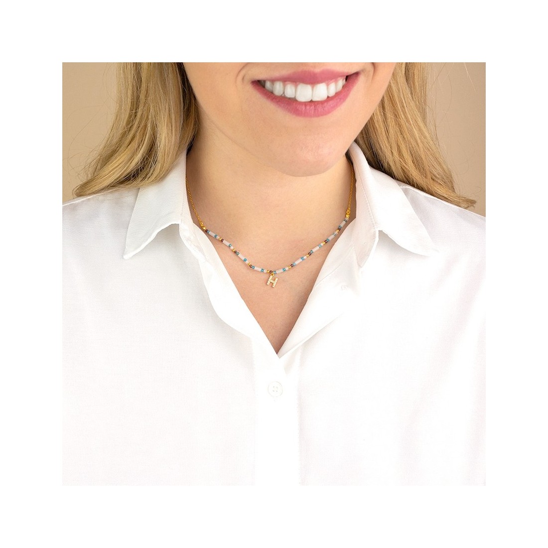 Gargantilla de Plata de Ley chapada en oro con cuarzo blanco, amatista, turquesa facetada de 2 mm y 5 bolitas de plata. La piedra natural puede tener variaciones de color.