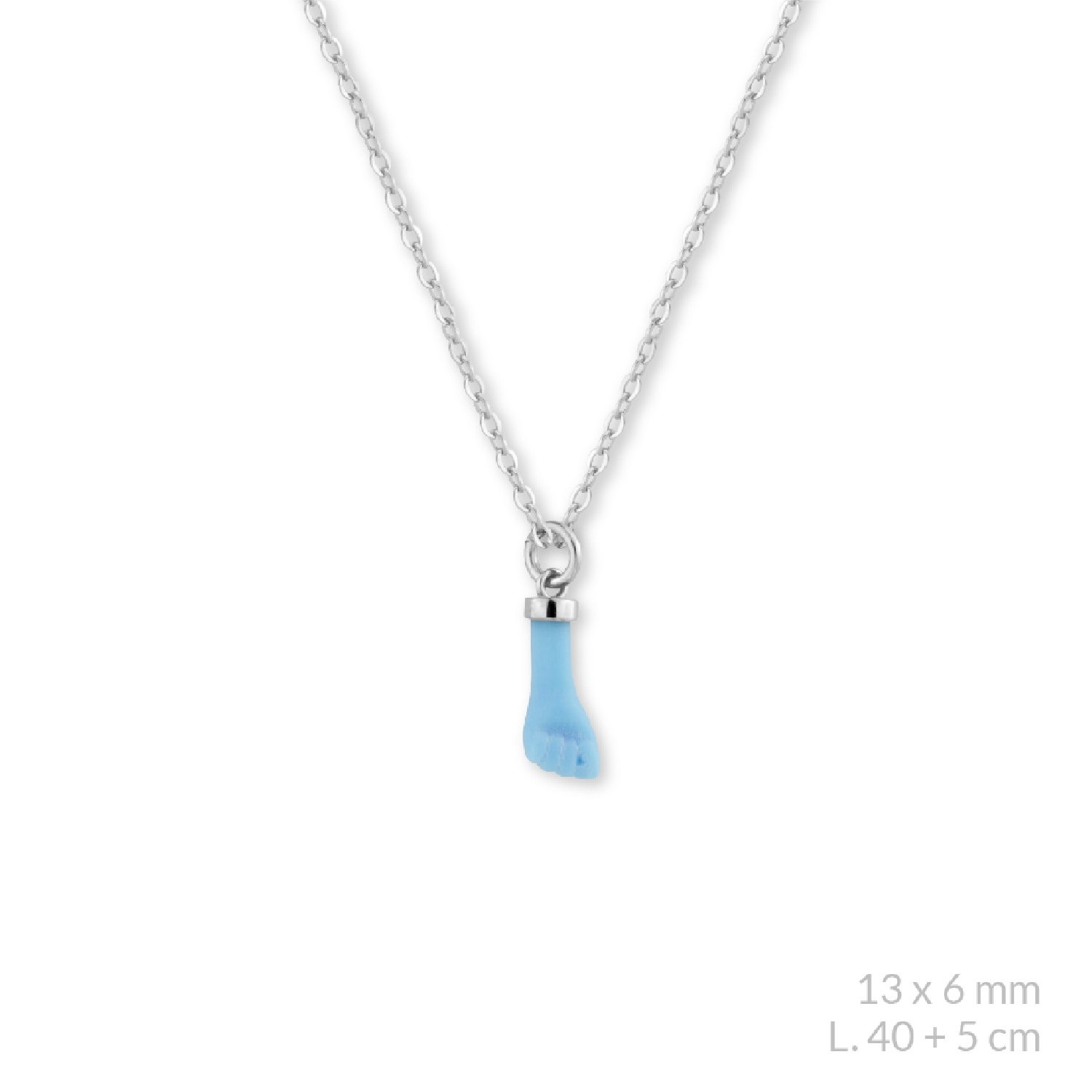 Tamaño de la higa: 13x6 mm aprox. Piedra: turquesa.