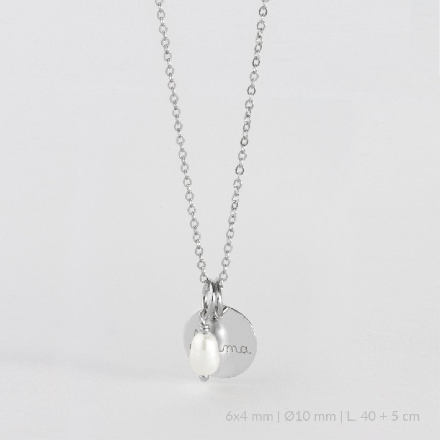 Diámetro de la medalla: Ø10 mm. Tamaño de la perla: 6x4 mm. La perla cultivada puede tener variaciones de color, tamaño y forma debido a su origen natural.