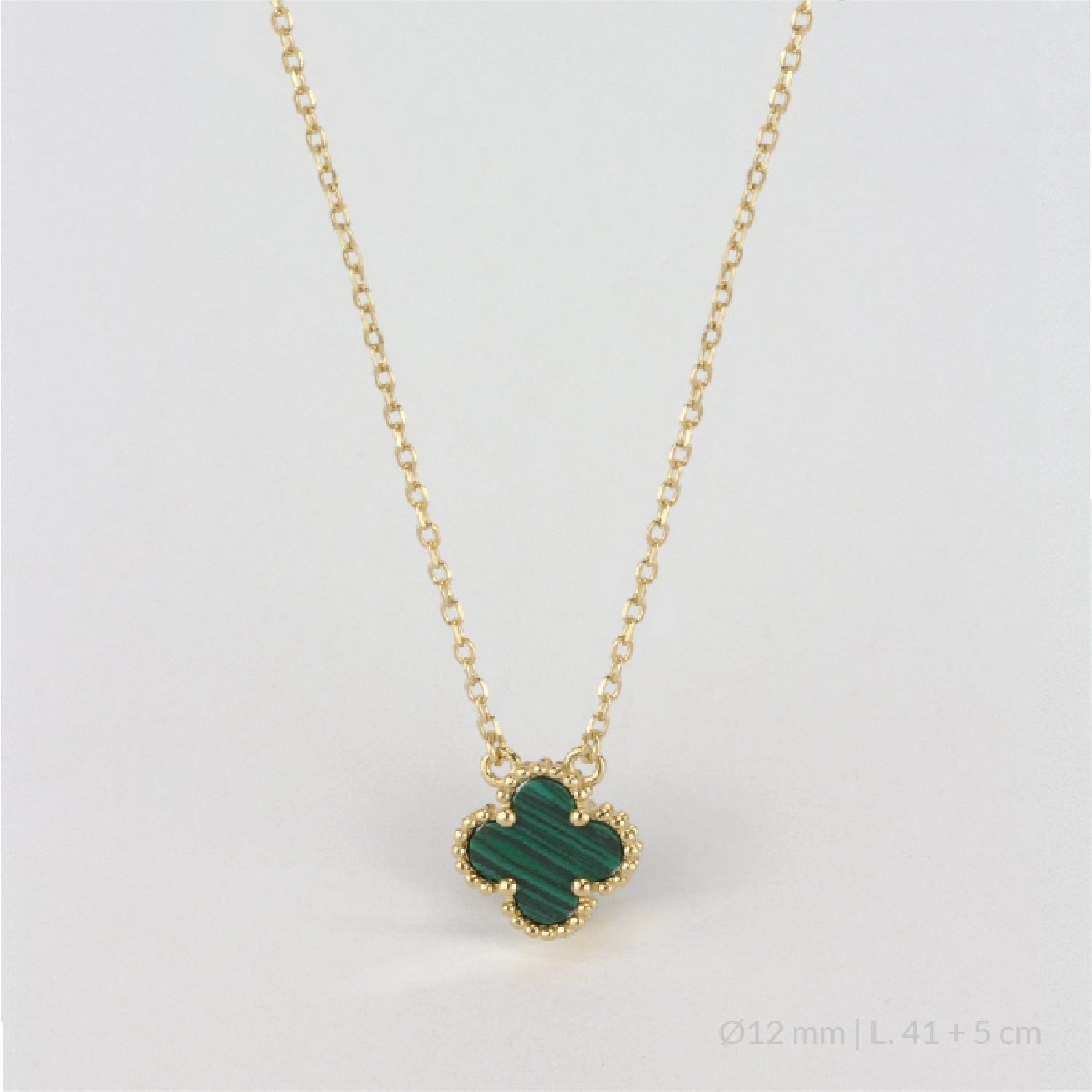 Gargantilla de Plata de Ley chapada en oro con flor en malaquita.