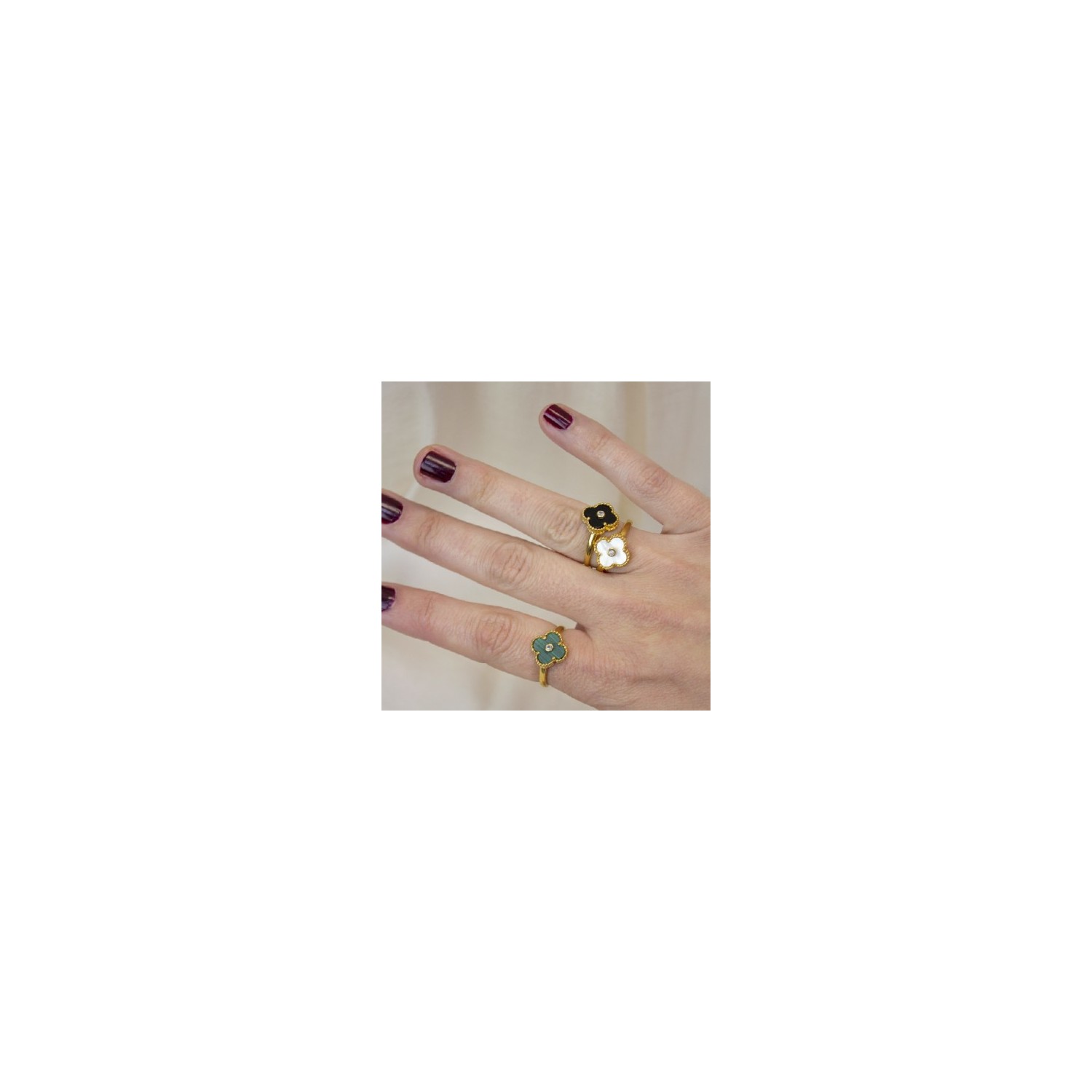 Anillo de Plata de Ley chapado en oro con flor en nácar y circonita blanca.