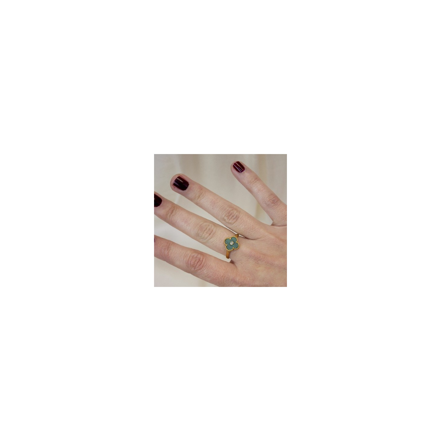 Anillo de Plata de Ley chapado en oro con flor en malaquita y circonita blanca.
