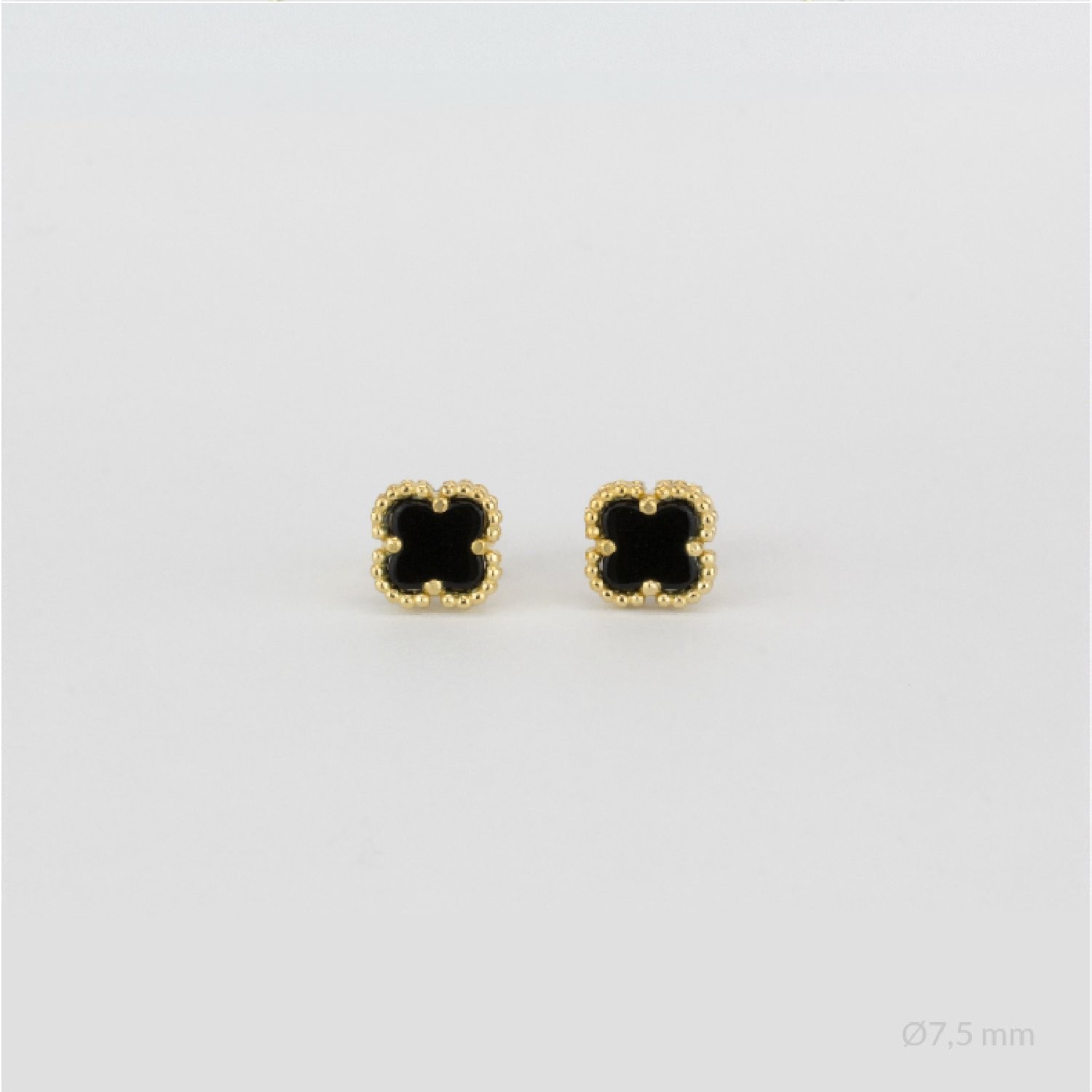 Pendientes de Plata de Ley chapados en oro con flor en ónix negro.