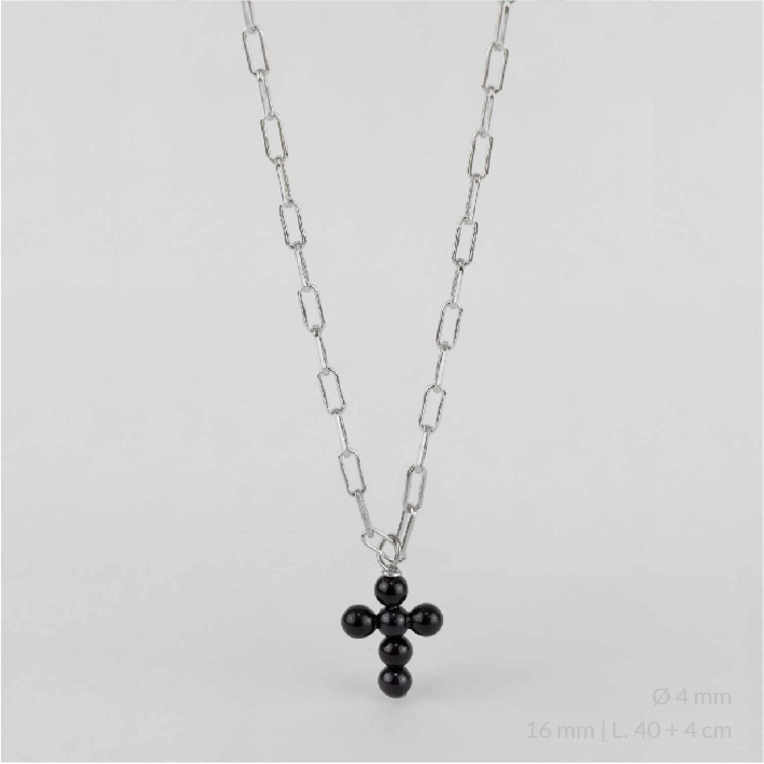 Gargantilla de Plata de Ley con cruz de perlas de color ónix.
