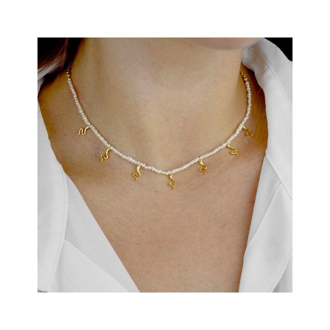Gargantilla MiniPerlas Serpientes Dorada
