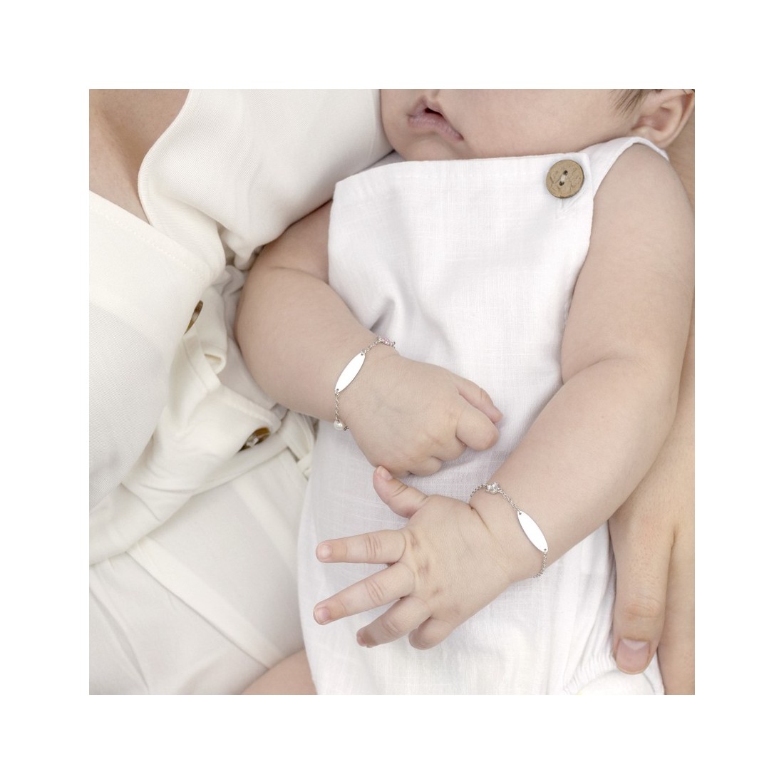 Esclava de Plata de Ley con flor de esmalte rosa y circonita blanca de 4mm.